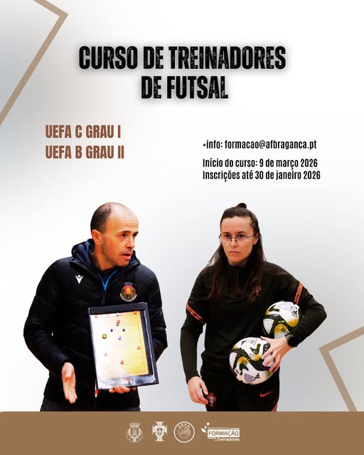 Estão abertas as inscrições para o Curso de Treinadores de Futsal da Associação da AF Bragança UEFA C Grau I e UEFA B Grau II.